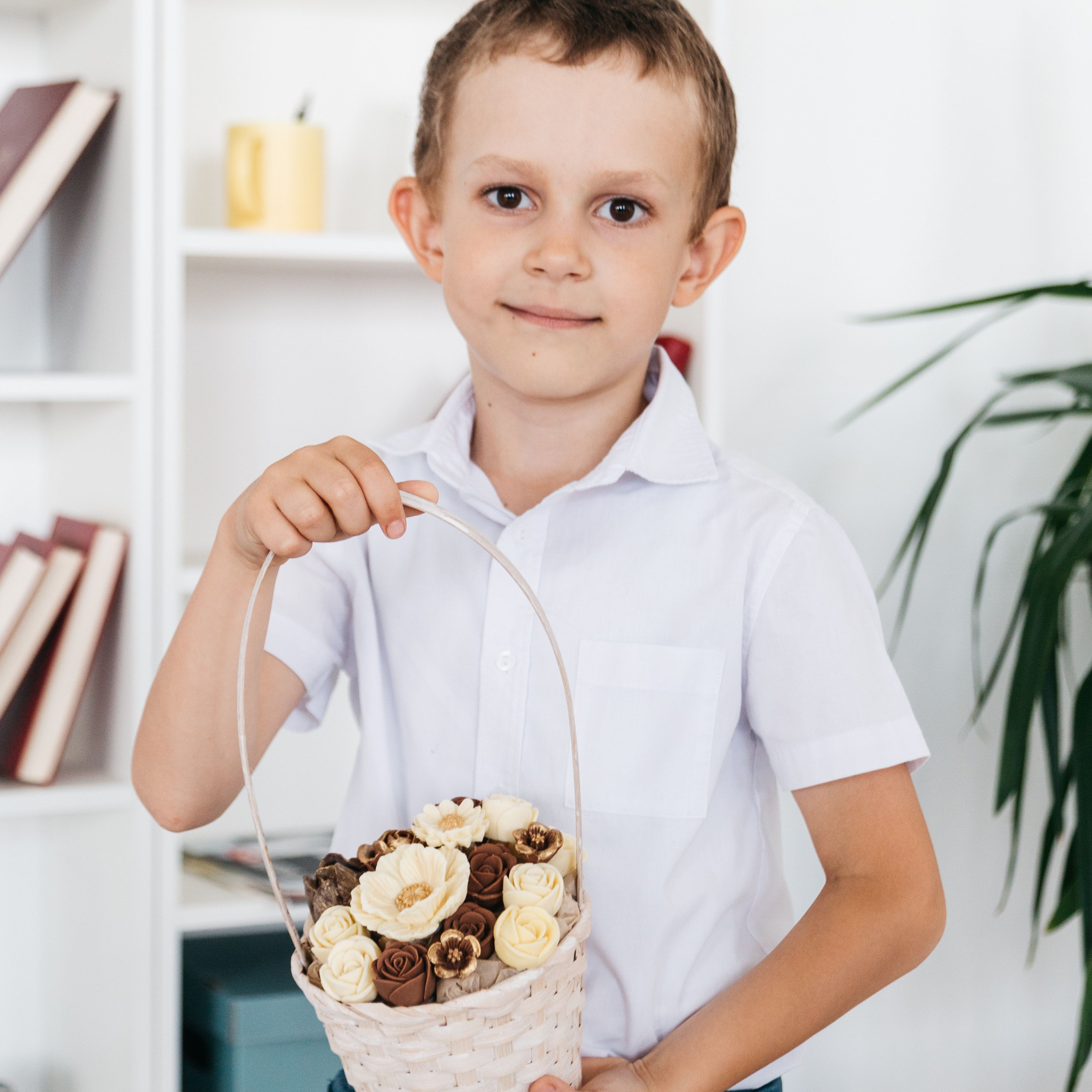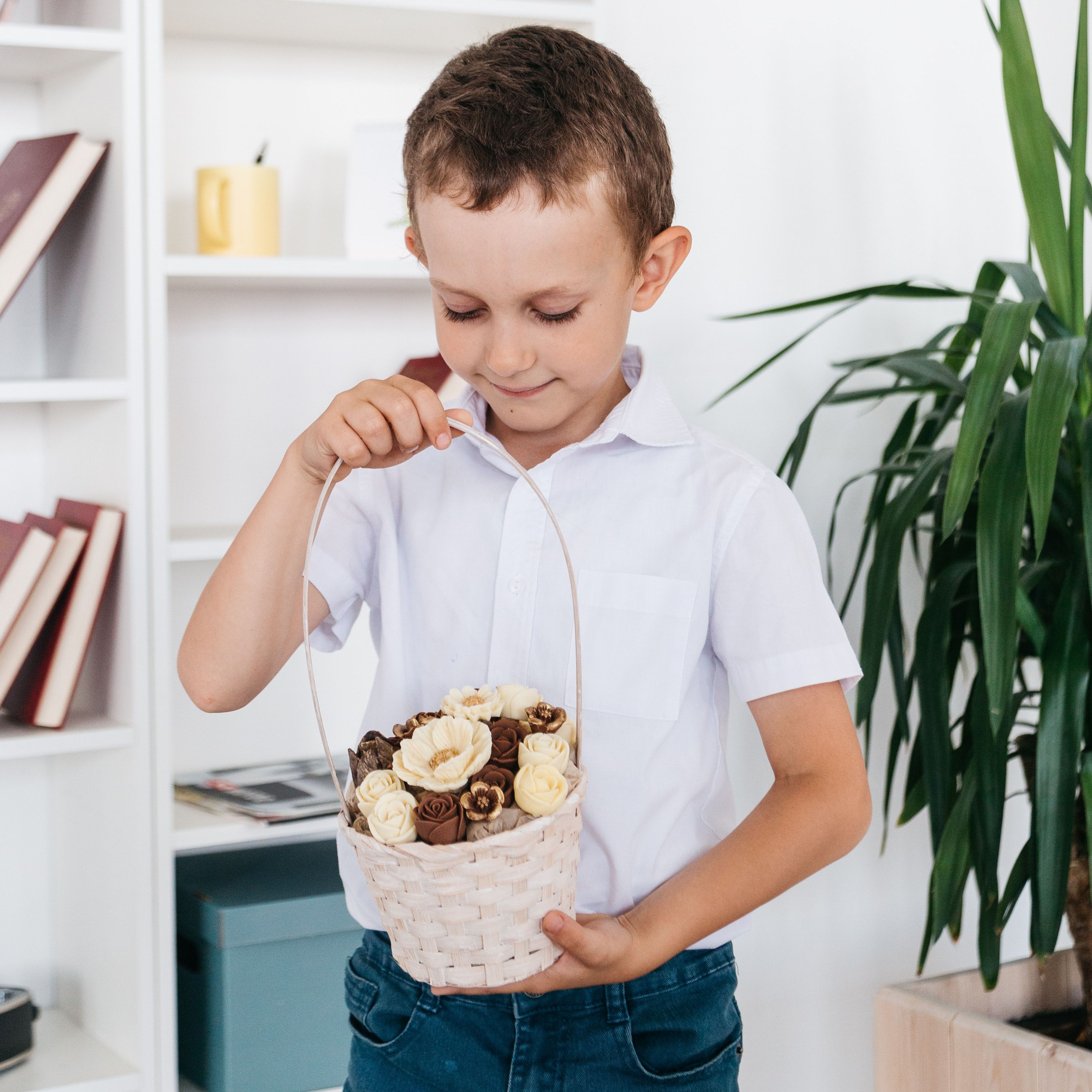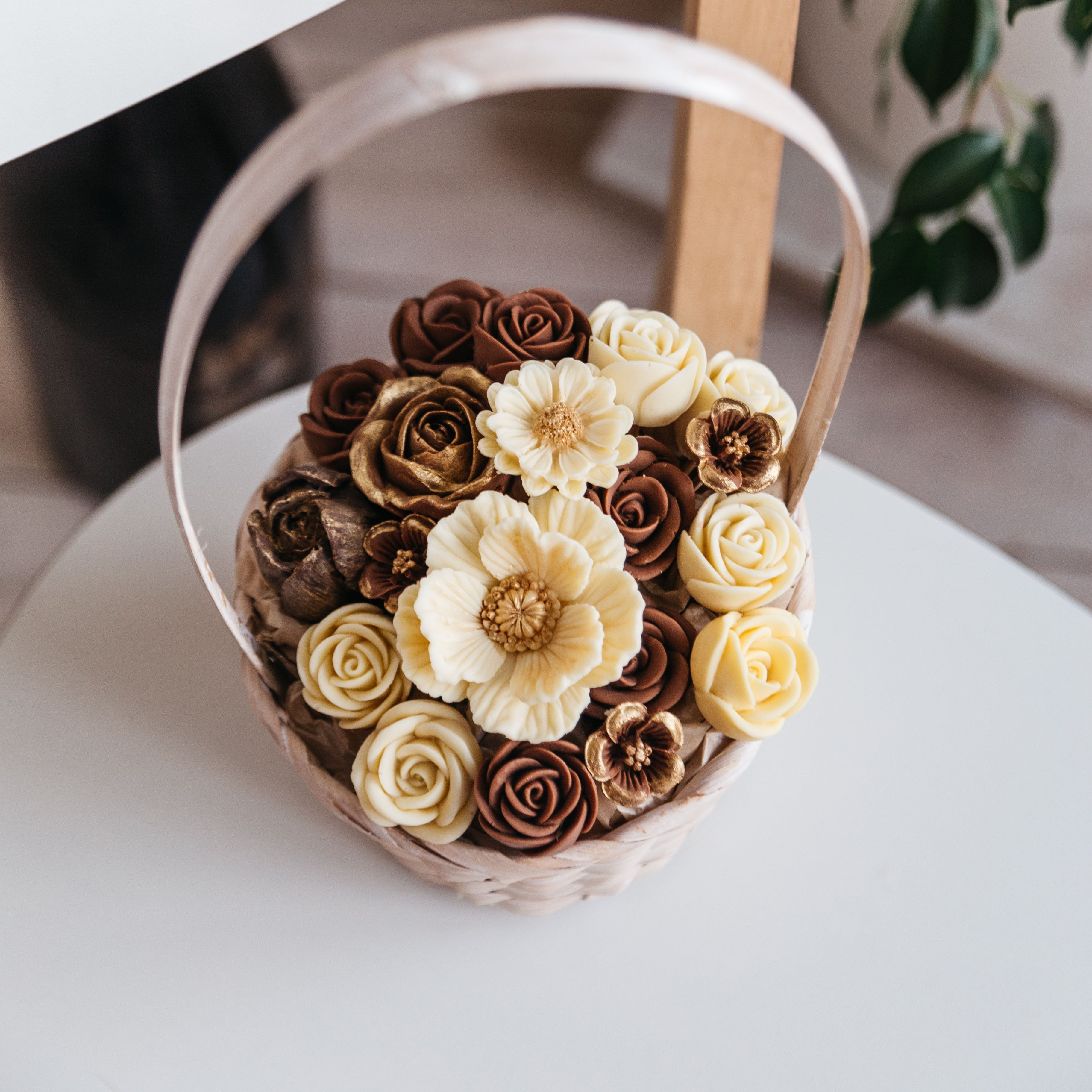 #шоколадные_ромашки #шоколадные_тюльпаны #букет_в_корзинке #шоколадные_розы